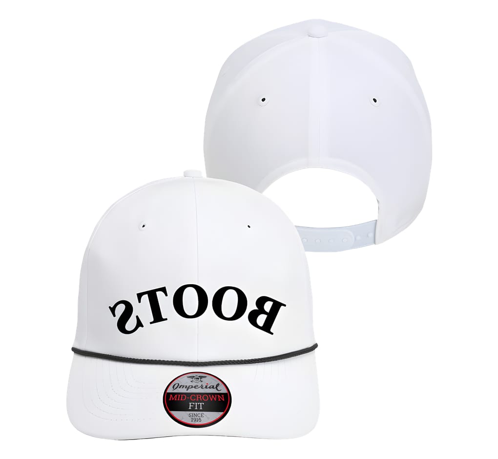 100% recycled polyester, performance fabric Retro fit with rope braid Structured, six-panel, mid-profile Pre-curved bill, Frost Grey underbill Moisture-management and antimicrobial sweatband Imperial woven label by snapback closure